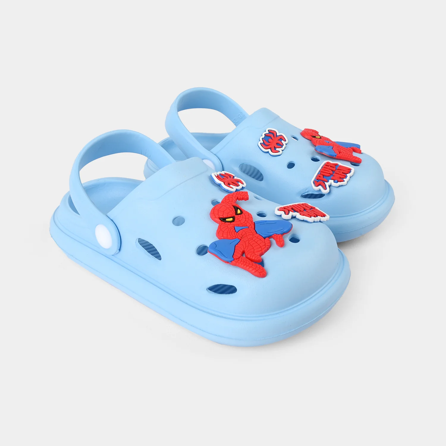 These blue boys Batman clogs feature a fun themed design and a back strap, offering a comfortable and playful fit for everyday wear.