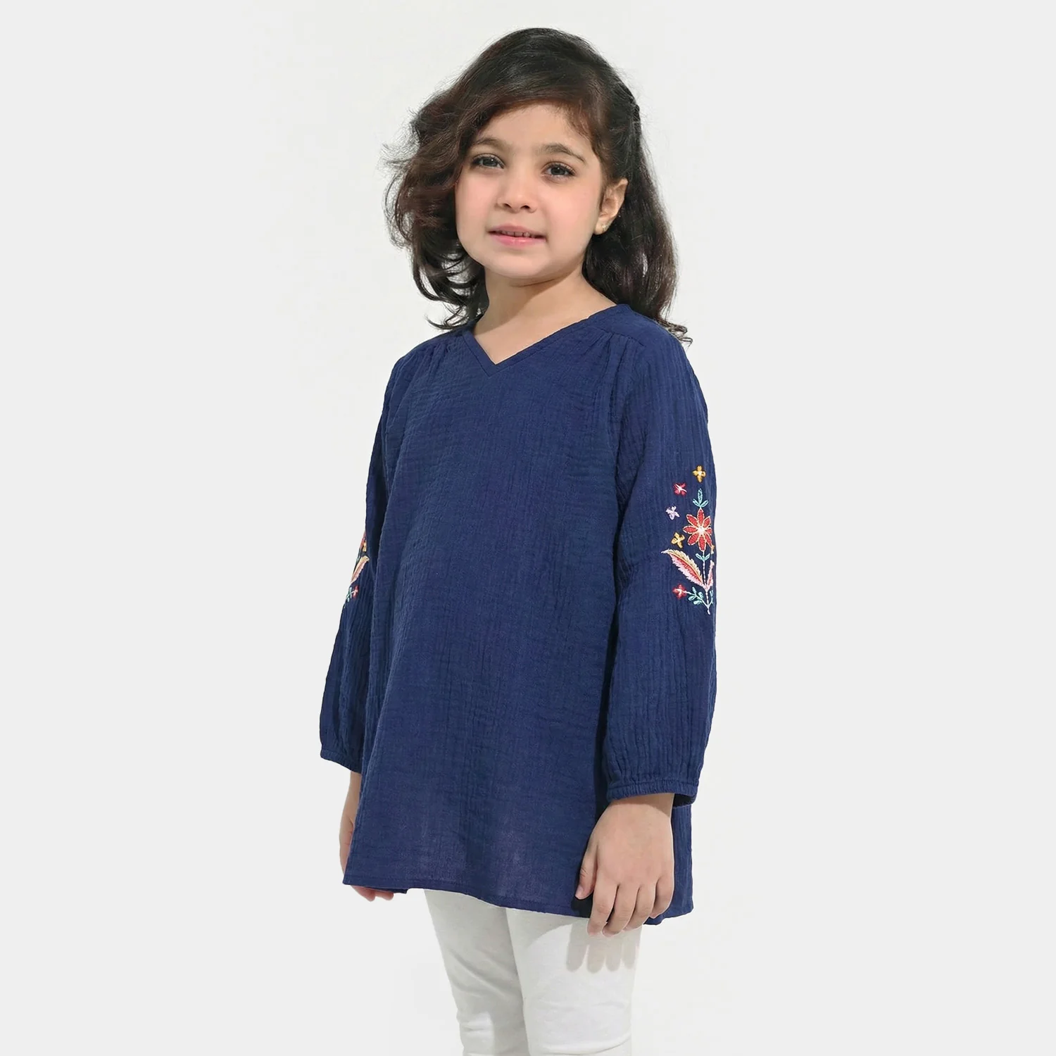 Girls Cotton EMB Top Bouquet-Navy Blue