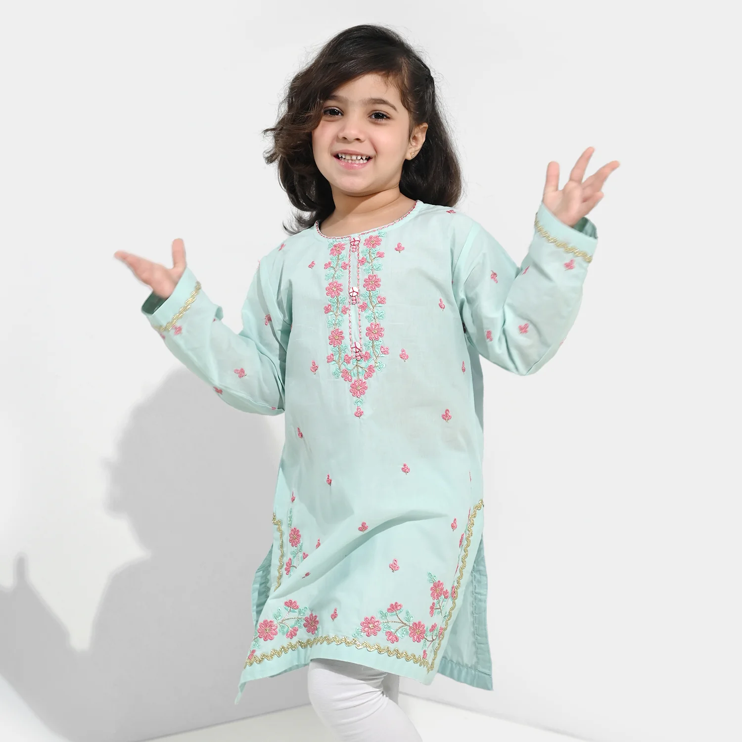 Girls Cotton Poplin Emb Kurti Zohra - Mint Green
