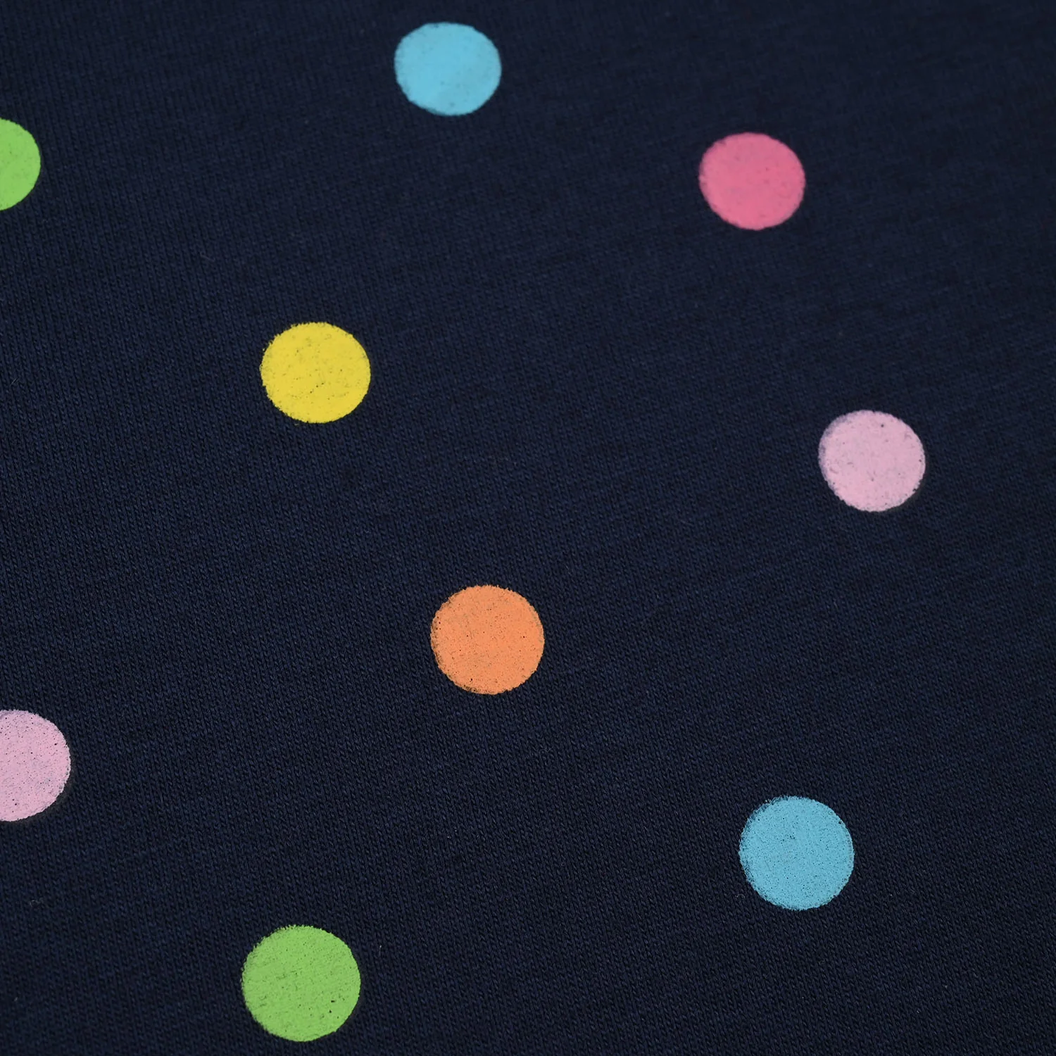 Girls PC Jersey Night Suit (Polka Dots) - Navy Blue