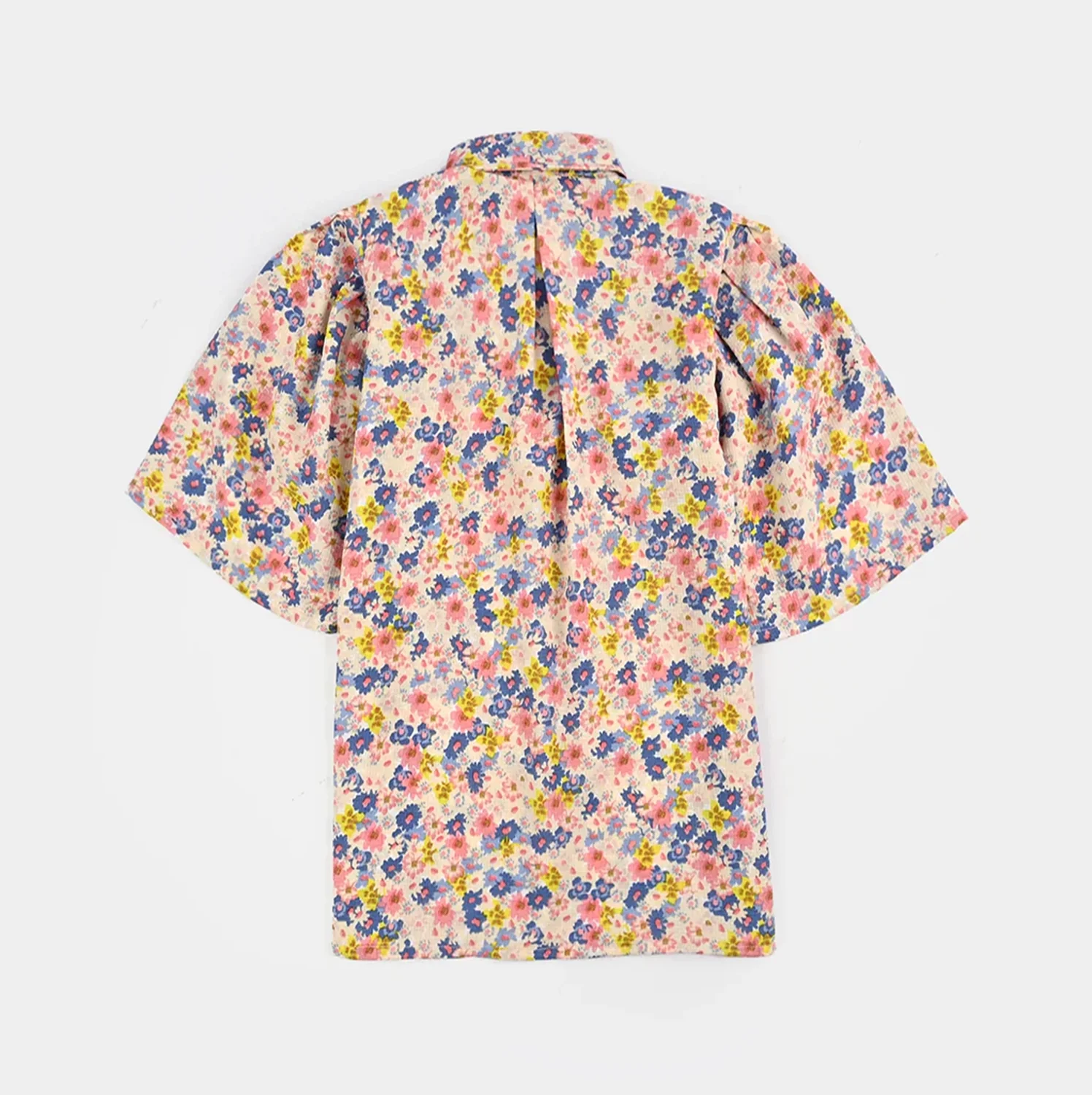 This girls floral print shirt features a collar, front button closure, and loose half sleeves for a comfortable, stylish look.