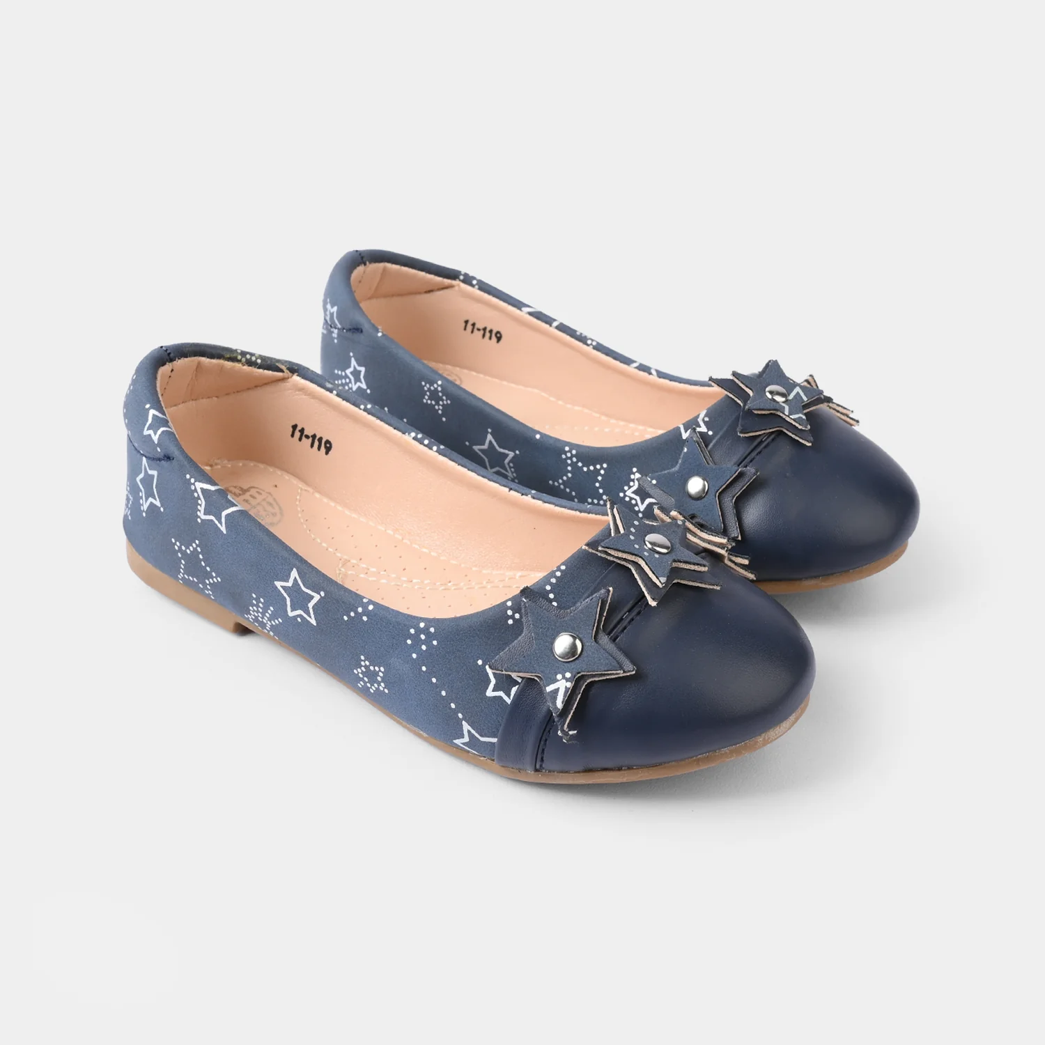 Navy girls pumps featuring star designs for a stylish, durable finish, perfect for everyday wear.