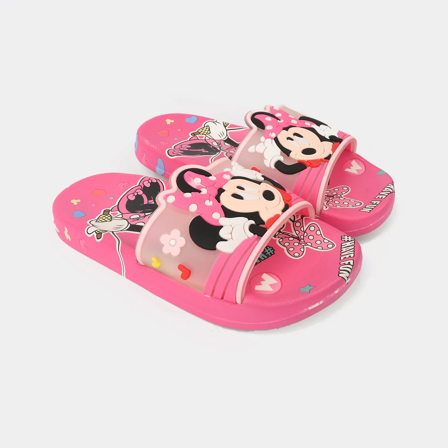 Girls Fuchsia/Pink slippers featuring a Minnie Mouse theme in purple, designed for all-day comfort and easy wear.