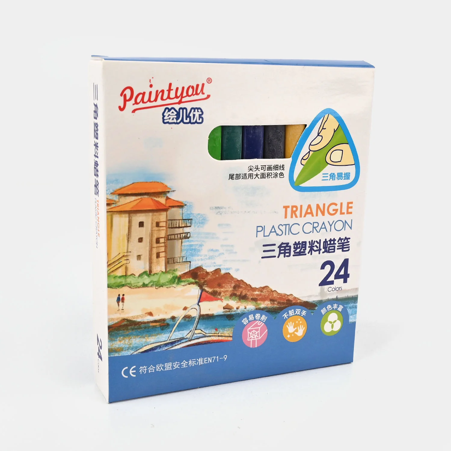 Triangular ergonomic shape helps children hold the crayon with ease and improves grip control.